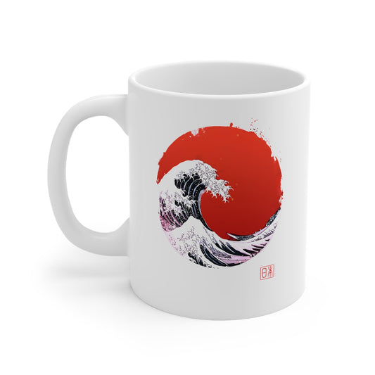 Japanese-Inspired Design Great Wave Off Kanagawa Coffee Mug - 11oz Ceramic Mug, Ideal Gift for Japan lovers Front Design