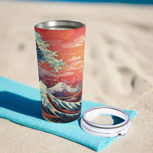 Japanese-inspired Wave Design 20oz Tumbler "The Great Wave off Kanagawa" Stainless Steel Custom Beach, Coffee, Wine Tumbler