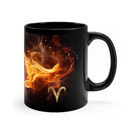 Stylish Aries Zodiac Sign 11oz Custom Mug | Ideal Birthday Gift for Him and Her Ceramic Black Mug | Designed for the Ultimate Coffee Lover